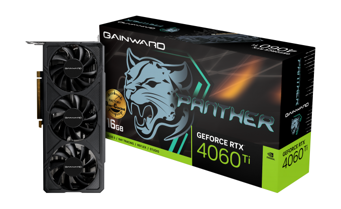 Product NameGainward GeForce RTX™ 4060 Ti Panther OC 16GBBarcode471056224-4113GPUGeForce RTX 4060 TiGPU Clockspeed2595 MHz (Boost)Memory16 GB GDDR6 (128 bits)Memory Clockspeed9000Mhz (18Gbps)Bandwidth288 GB/sBusPCI-Express Gen 4Cooling2.5 Slot Fan CoolerConnectivityDP 1.4a x 3 HDMI 2.1a x 1Product Size249.9 x 115 x 49.6 mmPower Connector8-pin x1P/NNE6406TU19T1-1061Z